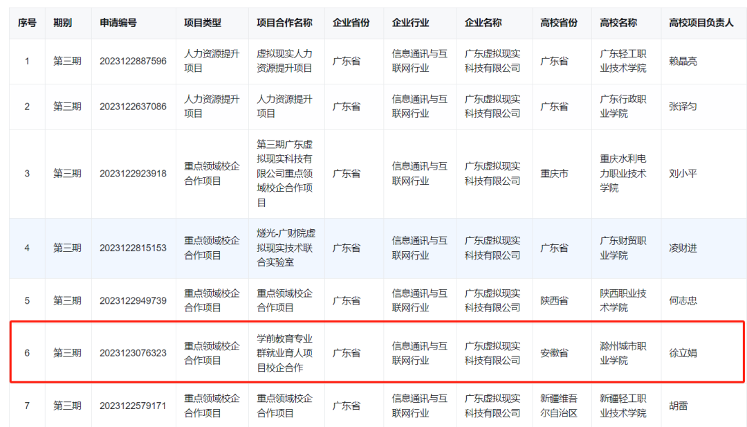 为贯彻落实党中央、国务院关于高校毕业生就业创业工作的决策部署,深化产教融合、校企合作,健全完善校企协同育人机制,推动高校人才培养与就业有机联动、人才供需有效对接,教育部持续深入实施供需对接就业育人项目。经高校与用人单位联合申报、专家审核,教育部近期公布了第三期供需对接就业育人项目立项名单,我院与广东虚拟现实科技有限公司合作的供需对接就业育人项目获批,项目类型为重点领域校企合作项目。