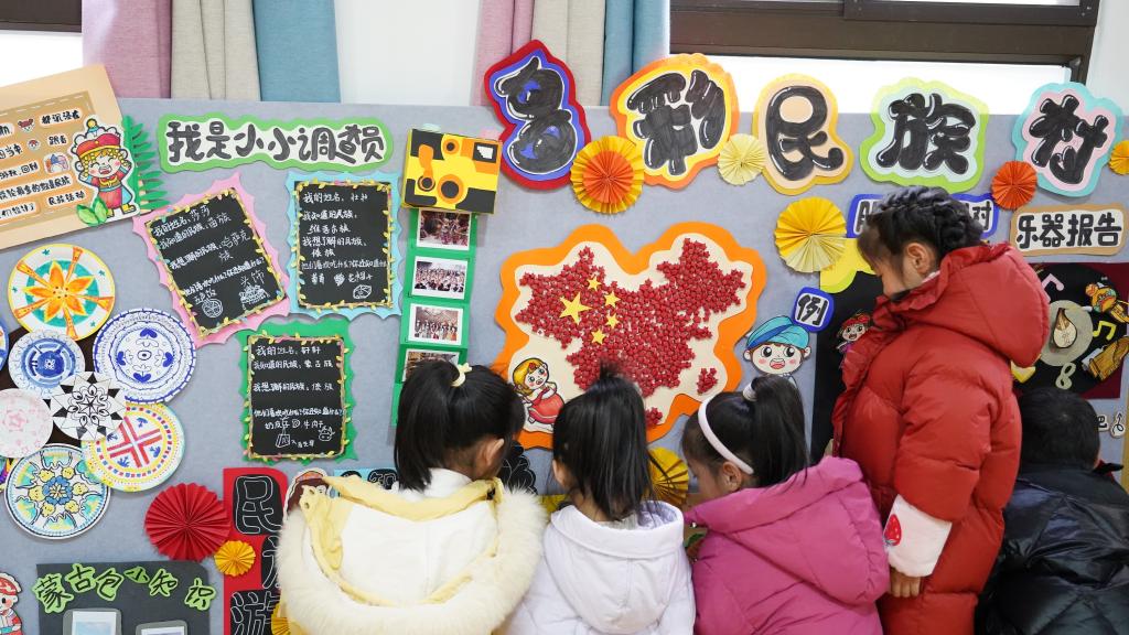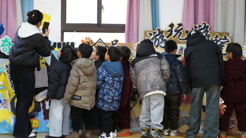 活动期间,教育学院精心挑选了多件在大赛中脱颖而出的作品,送至名儒园幼儿园艺境山城分园进行展示。参与创作的学生摇身一变成为“小老师”,热情地为小朋友们讲解作品内涵。在幼儿园里,小朋友们被精美绝伦的环创作品深深吸引,围聚在作品周围,眼中满是好奇与兴奋。面对“游玩 游皖”,他们纷纷指着景点向学生“老师”提问,在互动中增长见识;在科普展区,更是积极参与互动游戏,小手不停地触摸模型、转动关节,沉浸在知识探索的欢乐中。