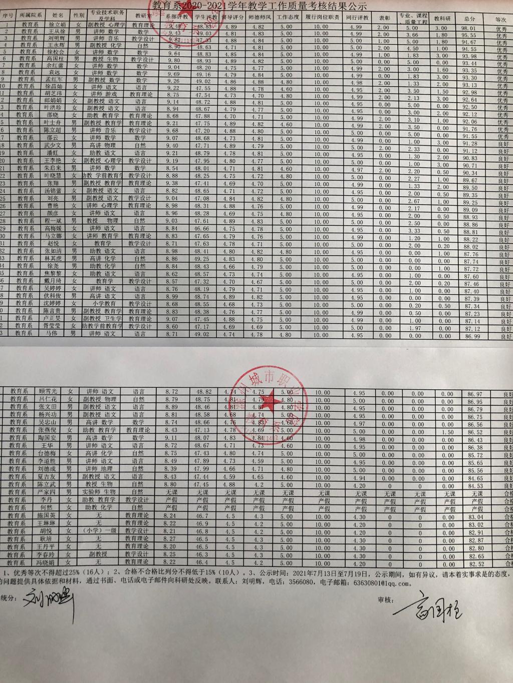 教育系2020-2021学年教学工作质量考核结果公示-教育学院