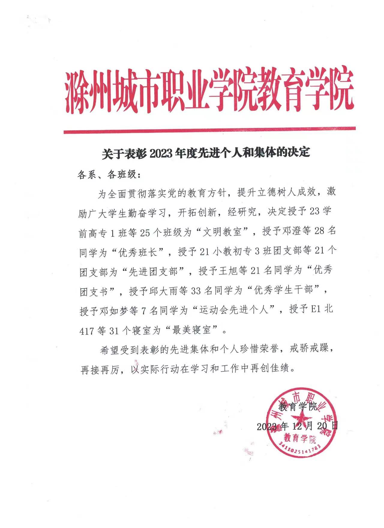 关于表彰2023年度先进个人和集体的决定-教育学院