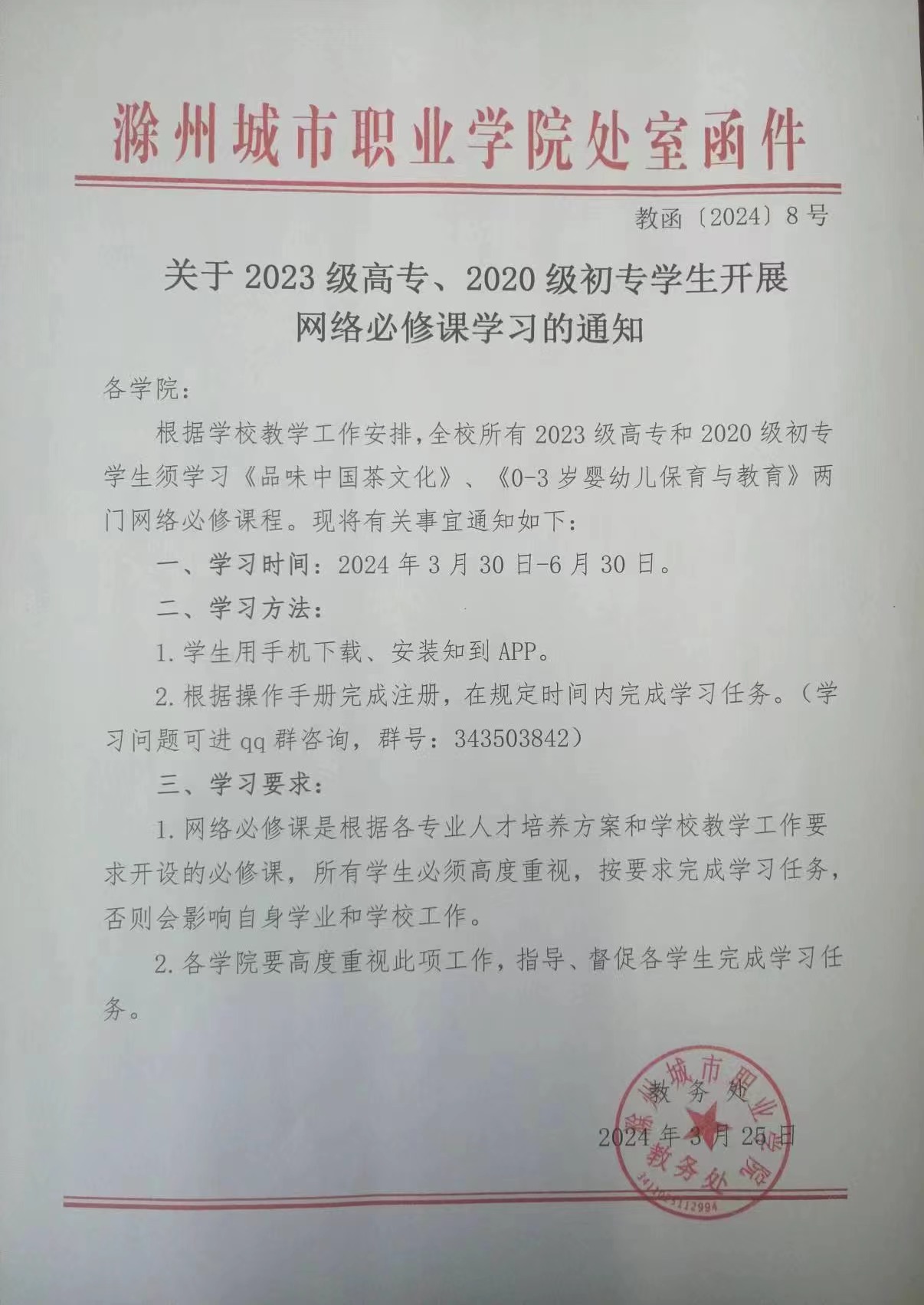 关于2023级高专、2020级初专学生开展网络必修课学习的通知-教育学院