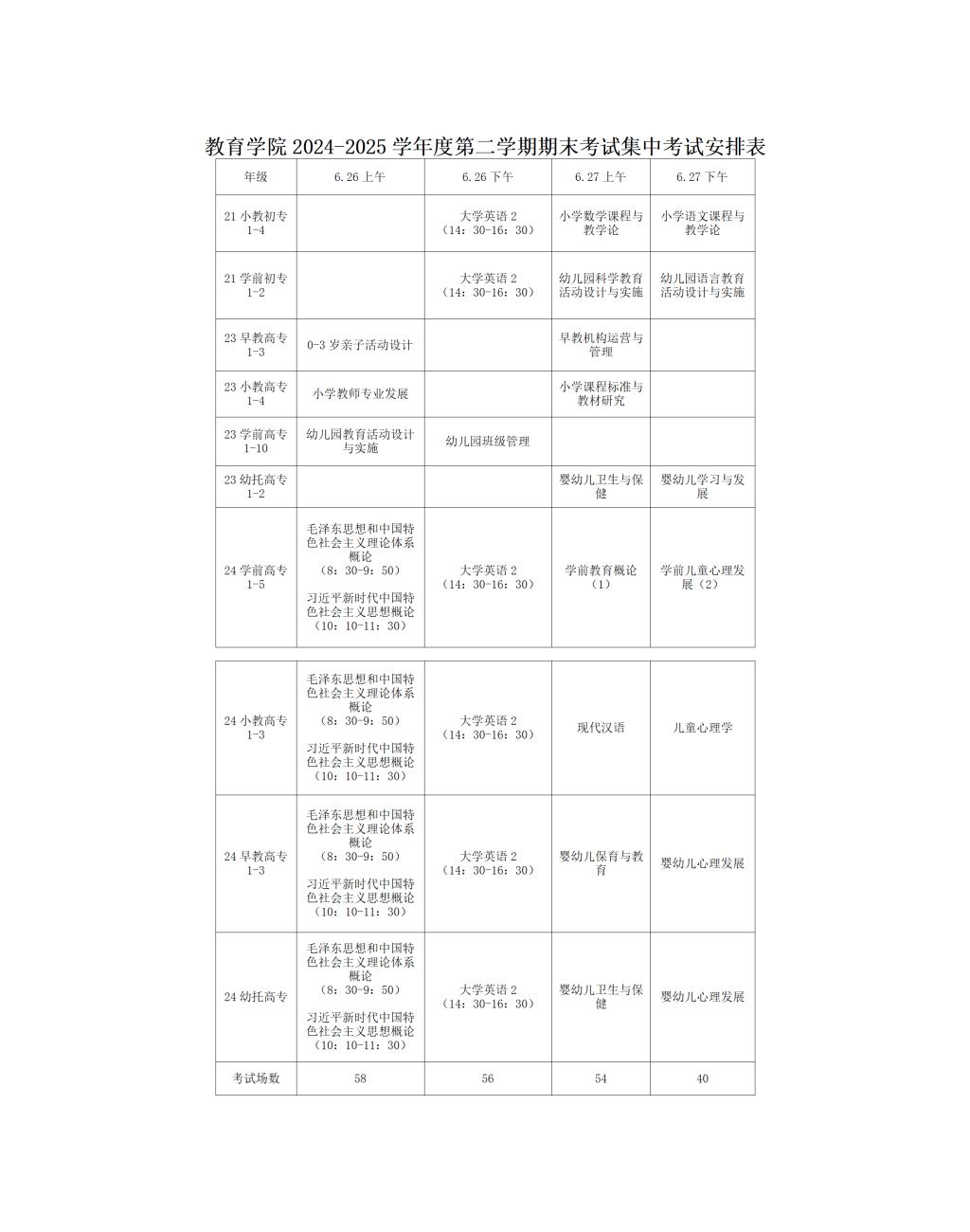 教育学院2024-2025学年度第二学期期末考试集中考试安排表