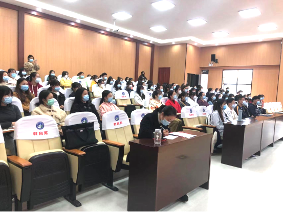 20211117日下午14时,教育系分党校在教育系报告厅举办2021年第期培训班开班仪式暨第一讲。系党总支书记钱庆兵、系党总支委员、教工支部委员、学生支部委员、班主任潘虹老师及本期师生学员参加了开班仪式。开班仪式由教育系党总支副书记徐立娟主持。