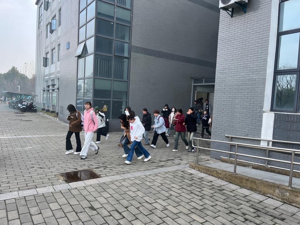演练开始前,教育学院制定了详细的演练方案,明确演练时间、地点、人员安排以及疏散路线,并召开辅导员会议,部署演练安排,为演练做好充分准备。15点55分,随着消防警报响起,演练正式开始。在老师的引导下,同学们放下书本、手捂口鼻、低头弯腰,奔向教室门口,按照预定疏散路线有序撤离出教学楼。
