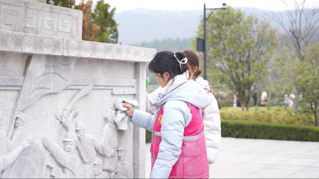 学生干部与入党积极分子身着整齐服装,带着清扫工具来到镜园广场。大家分工明确,迅速投入到清扫工作中。有的同学认真清扫广场上的落叶、烟头和杂物,有的则细心擦拭广场的公共设施。在擦拭革命纪念碑环节,同学们怀着崇敬之情,小心翼翼地擦拭着碑身的每一处,深切表达对革命先烈的缅怀与敬意。大家不怕脏、不怕累,用辛勤的汗水换来了广场环境的整洁与庄严,过往市民纷纷投来赞许目光。