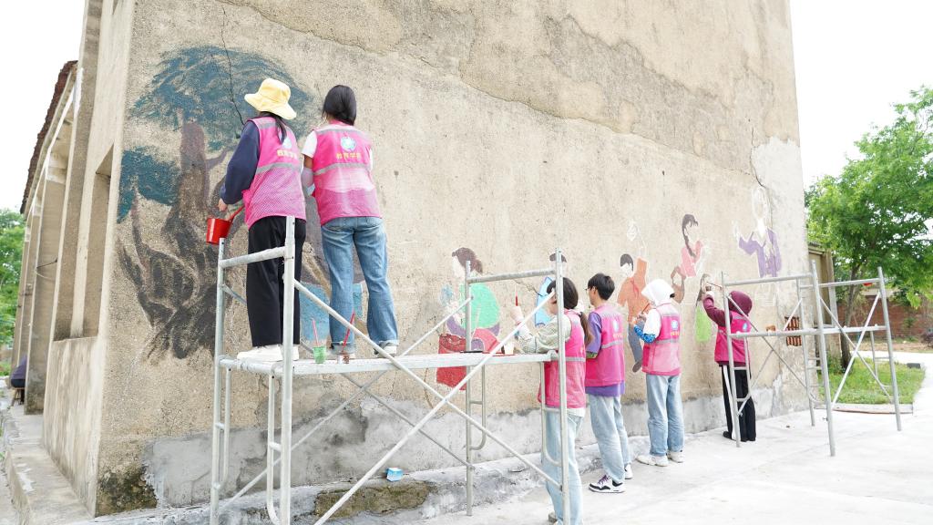 在活动期间,学生们充分发挥自己的想象力和创造力,将一幅幅充满生活气息和时代特色的墙绘作品呈现在村民面前。这些作品既有反映农村生活习俗的生动场景,也有展现新农村建设和农民精神风貌的励志标语,还有融合当地文化元素的创意图案,让原本单调的墙面焕发出新的生机。