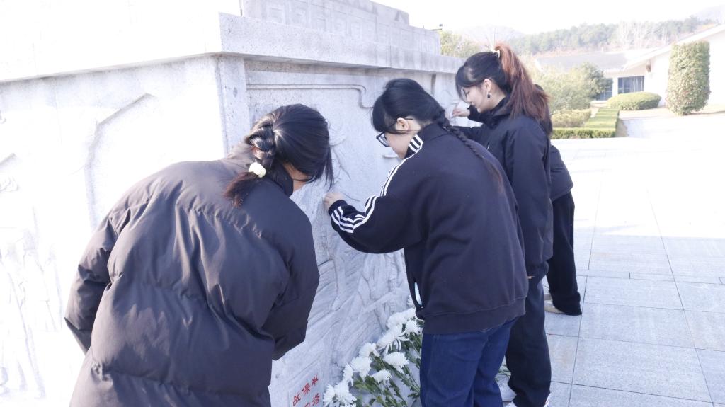 11日下午,学生代表在镜园红源广场齐聚,全体人员佩戴团徽徽章、列队整齐。同学们向革命烈士纪念碑三鞠躬,集体默哀,表达对先烈们深深的哀痛和沉重的悼念。随后,学生代表面向团旗庄严宣誓,立志不负先烈遗志,勇担时代使命。全体人员有序围绕革命烈士纪念碑一周,瞻仰革命烈士纪念碑,并敬献手中的鲜花及在横幅上签名,以表哀思。“前事不忘,后事之师”,刘思睿同学作为代表发言,她号召同学们以史为鉴,面向未来,砥砺前行,把爱国情怀深深镌刻在心底、落实于行动。活动结束后,同学们自发擦拭纪念碑、清理周围垃圾。