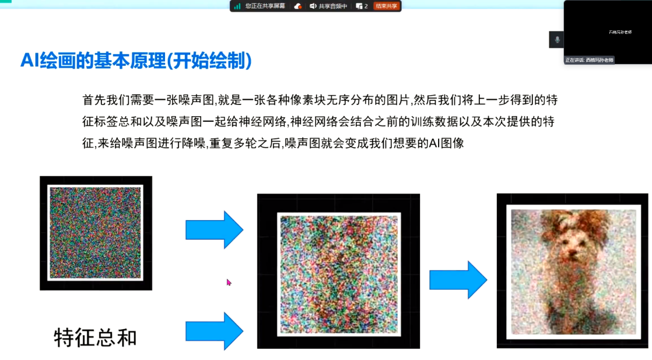 11月24日,孙嘉伟老师通过一个动画视频为例,介绍了AI工具在图像、音频和视频制作中的应用,包括固定角色风格、自动延长、自定义延长、声音克隆、文字定格等功能。同时,还讲解了如何通过AI工具进行图片绘制、照片修复、视频转绘等操作,参培教师同步操作练习,线上互动热烈。此外,还提到了AI工具在海报设计和logo设计方面的应用,以及如何结合PS等工具进行图像创作。