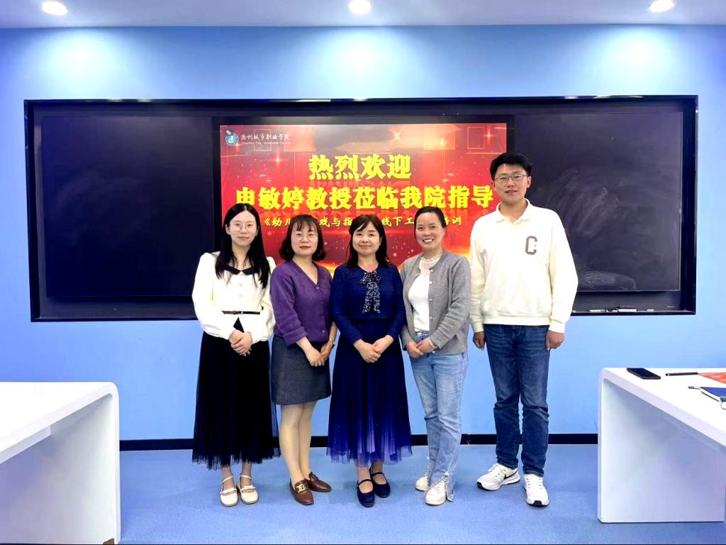 为全面落实国家职业教育改革要求,深化“三教”改革,推动学前教育专业高质量发展,4月26日,我院《幼儿园游戏与指导》金课建设团队全体成员联合校外专家申敏婷教授,在静思楼407虚拟仿真教室举办《幼儿园游戏与指导》金课建设专题工作坊研讨会。会议以“精准聚焦、协作共创、成果落地”为核心,旨在通过专家引领与实践打磨,推动学前教育专业课程建设与行业需求深度对接,聚力打造符合新时代需求的学前教育"金课",为培养高素质幼儿园教师提供支撑。
