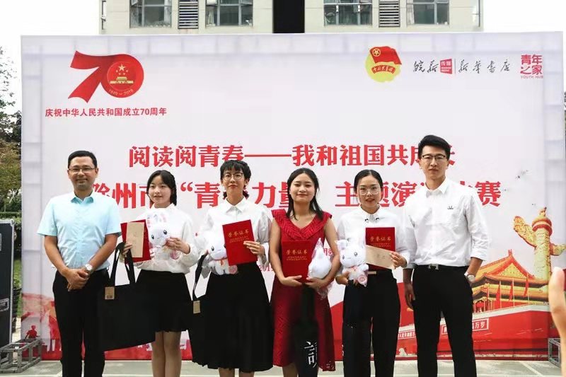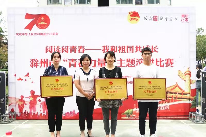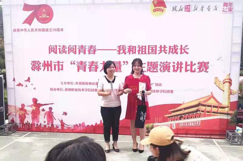 9月25日下午,由团市委和滁州新华书店阅+共享书店金鹏99广场店联合主办的滁州市“青春力量”主题演讲比赛成功举办。比赛现场,来自滁州市各校的14名选手结合个人学习、生活经历和身边榜样故事,展现了一代代青年与祖国共奋进、与时代共成长的生动画面,在广大青年中传递了深厚的爱国情怀和蓬勃的青春气息。经过激烈的角逐,我院青年学生鲁瑞喜获一等奖;冯好、刘梦圆、姜靖喜获二等奖;周莹、候晶、许凤翥喜获三等奖,院团委喜获优秀组织奖!
