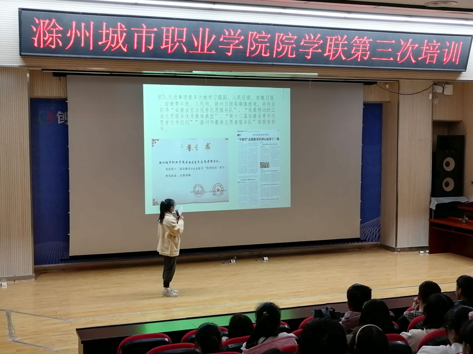 近日,我院在图文中心4楼学术报告厅开展以“志愿服务与大学生成长”为主题的专题讲座。院志愿者队队长汪文静担任主讲。