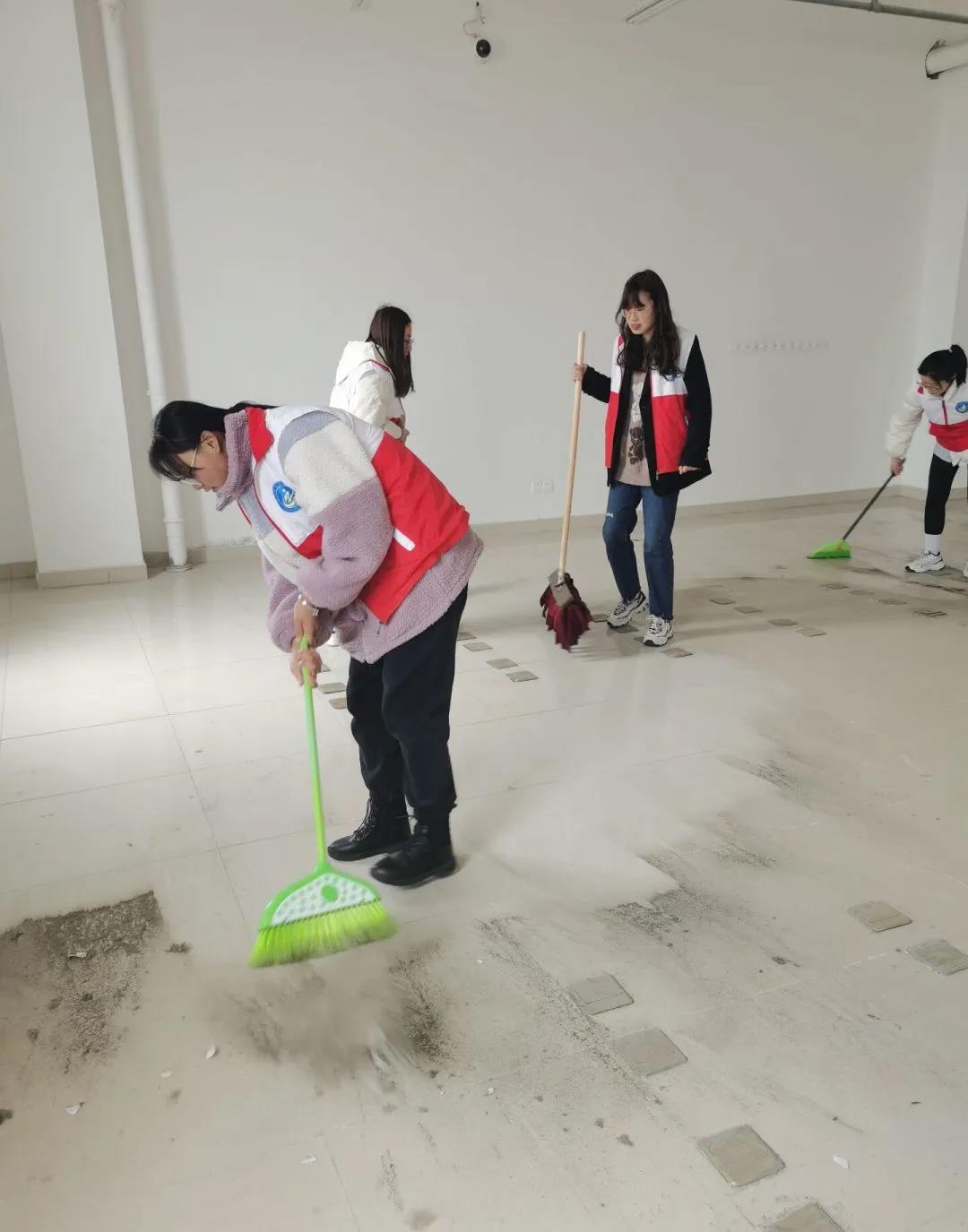 活动现场,学生志愿者统一着志愿者马甲、佩戴红袖章,手持扫帚、夹子等卫生工具,充分发挥不怕累、不怕脏的精神,对本校图文中心图书馆进行集中清理各处的“牛皮癣”,对地面、门框、玻璃及卫生死角进行了清扫,并细致进行垃圾分类,确保不留卫生死角。