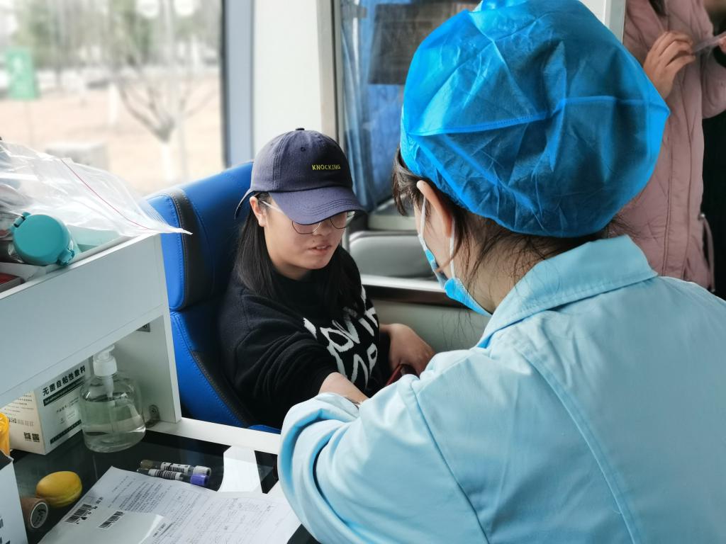 在采血现场,参与献血的师生们在血站工作人员和我院青年志愿者的引导下,依次进行登记、测量血压、抽血检测等流程。同时,活动现场安排了大批志愿者向前来献血的同学们耐心讲解献血注意事项,引导和帮助同学们完成献血登记和身体检查,并在血液初筛合格后,引导大家在献血车旁有序排队,保持适当距离。