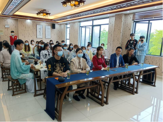 伴随着清雅的音乐和绿茶的冲泡解说,王丹阳同学现场为师生表演茶艺《一路正青春》,展示了茶艺师的风采。碧绿的茶叶在杯中犹如花朵绽放,茶香悠然催人醉,茶艺师精湛的技艺、熟练的泡法让师生感受到茶艺魅力,赢得了阵阵掌声!