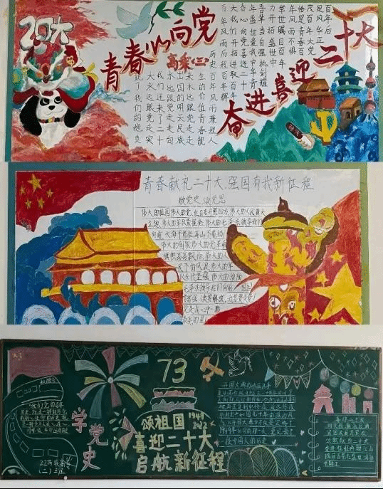 同学们广泛搜集相关资料,精心设计版面,图文并茂展现了对祖国的热爱,对美好生活的向往和期盼,一笔一画,构思精细,匠心独运,描绘了祖国的山河壮美,表达对祖国生日的深深祝福。