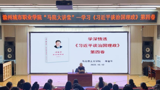 10月12日下午,我校在图文中心四楼报告厅举办青马工程培训班第四讲——学习《习近平谈治国理政》第四卷。本次会议主讲人为马克思主义学院院长季金年,各学院学生会骨干、青马班全体成员参会。