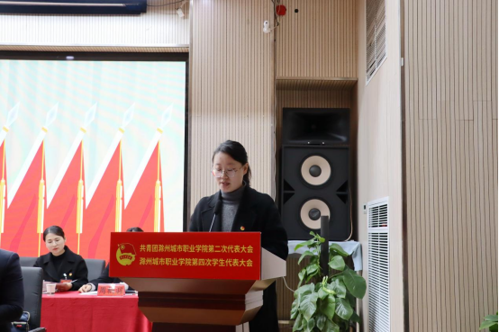 大会闭幕式上,陈婷婷致闭幕词,她表示,这是一次统一思想、凝聚共识、共谋发展的大会,充分展现了我校团员青年朝气蓬勃、开拓进取的良好精神风貌。她强调,新一届委员要不负众望,深入贯彻大会精神,引导广大青年坚定理想信念,各位代表要履行职责,密切联系青年,竭诚服务青年发展成才。各级团学组织要加强自身建设,坚持改革创新,开创我校团学工作新局面。