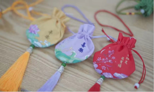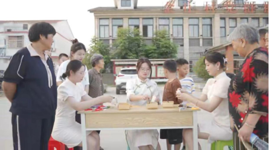 在注重专业医疗知识科普的同时,实践团也为宣扬传统文化开展一系列活动。正值端午,做香囊活动开展的如火如荼。实践团成员们身着旗袍,将中草药原料放入袋中,制成香囊,并与围观群众介绍功效,赢得喝彩。“着我汉家衣裳,兴我礼仪之邦”,实践团随机邀请了两位村民,为她们进行汉服妆造,并进行写真拍摄,为她们平淡的生活留下一抹重彩。