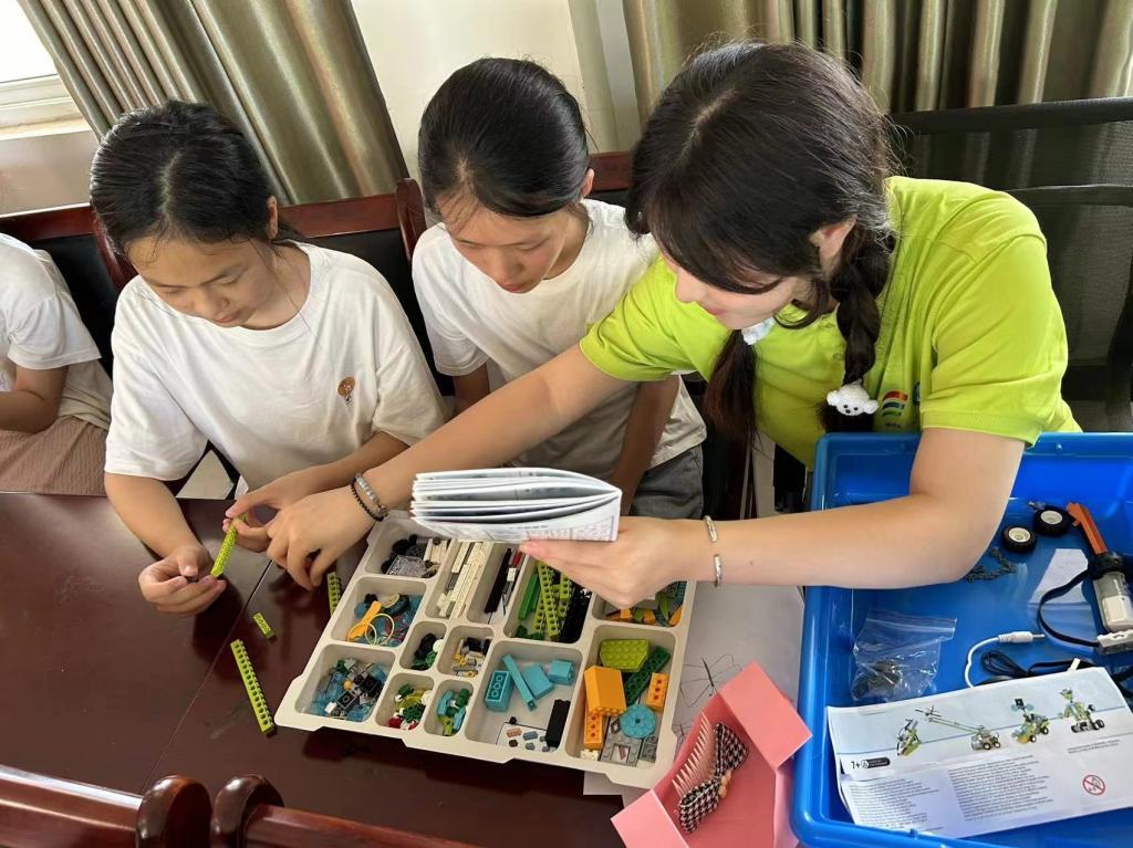 科创赋能团以生动有趣的形式展现高深莫测的科学技术。在宣城旌德县陈岭村,开设了机器人编程课程,并让孩子们亲自动手搭建并编程操控机器人。在全椒县大季村,实践团队策划了航天知识盛宴与前沿VR技术体验,让孩子们感受科技带来的震撼与惊喜,激活了孩子们心中的创新引擎。