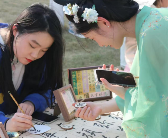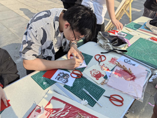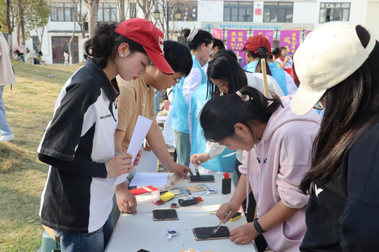 活动现场还同步开放了DIY手作、植物拓染、艾草香囊制作、剪纸艺术、活字印刷、3D打印展示等创意互动体验区以及摄影、书法、凤画、动漫作品展,吸引了众多学子驻足参与。