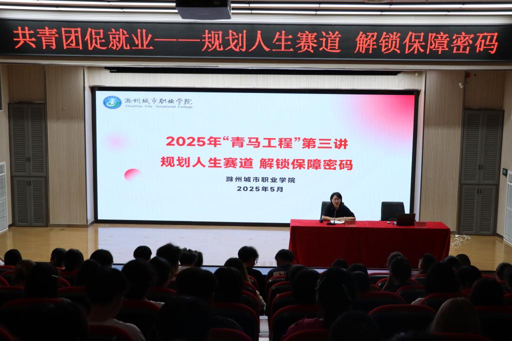 为深入学习贯彻习近平总书记关于促进高质量充分就业的重要指示精神,充分发挥共青团组织育人优势,引导青年学子在创业就业道路上找准方向,顺利迈出职业生涯第一步,5月14日下午,校团委联合滁州市社会保险事业管理中心在图文中心四楼报告厅举办“共青团促就业——规划人生赛道 解锁保障密码”主题宣讲,“青马工程”学员和2023级学生代表参加活动。