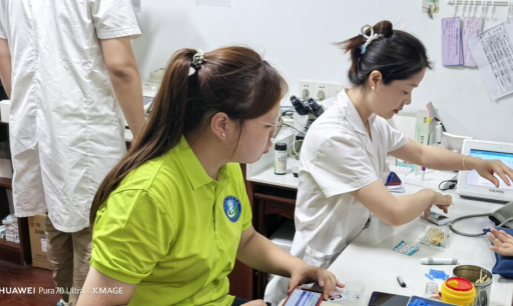 护理学院南丁格尔青年志愿者服务队走进梅铺社区京华园,通过义诊咨询、急救科普、康复指导与健康宣教“四维一体”的服务模式,为居民测量血压、血糖,耐心解答高血压、糖尿病等常见慢病管理问题,特别设计“银龄健康促进”环节,带领老人们学习科学编排的手指康复操,入户走访行动不便的高龄老人,指导居家康复训练要点,将健康关怀延伸至家门内;在凤西路社区卫生服务站,团队结合医学专业知识,为老年人开展基础体检,在蓝溪都市家园,医学院基层健康护航队以“科技赋能医疗”为主题,创新采用“科技+医疗”模式,通过自主研发的“慢康小助手”小程序,累计为200余名居民提供便捷的慢性病管理服务,让科技真正服务于老年群体的健康管理,“这个小程序太实用了,以后我在家就能监测健康状况!”一位参与的居民感叹道。