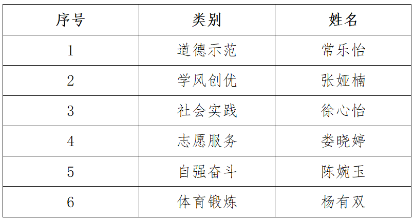 为深入学习宣传贯彻党的二十大精神,贯彻落实习近平总书记在庆祝中国共产主义青年团成立 100 周年大会上重要讲话精神,加强全省大学生思想政治引领,开展先进典型学习宣传,依据《关于开展 2022 年安徽省 “‘十佳’‘百优’大学生”选树工作的通知》要求,校团委经过审核决定:拟推荐常乐怡等6名同学申报2022年安徽省“‘十佳’‘百优’大学生”,现将拟推荐结果公示如下: