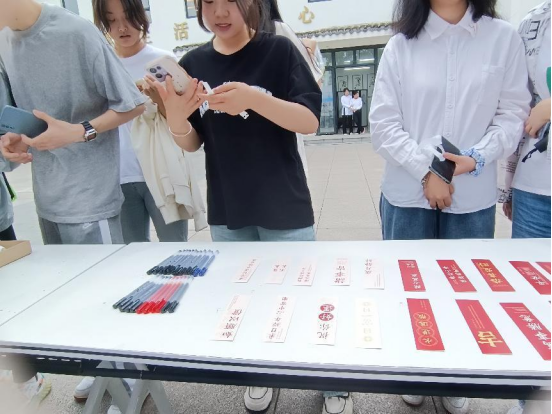 第二个部分有奖竞猜的活动。活动规则是同学们在盒子里任意抽一张纸条,然后说出正确法律知识答案,即可获得自己喜欢笔或者书签。举办有奖竞猜活动的意义就是让我们更加熟悉法律,加深同学们对法律知识的印象,从而能知法懂法,更好地了解法律。