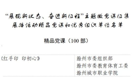 为持续深化“党课开讲啦”活动,不断满足基层党组织和党员多样化学习需求,自去年6月起,省委组织部会同省直机关工委、省委党校(安徽行政学院)、省委教育工委、省国资委党委,联合开展了“展现新状态、奋进新征程”主题微党课征集展播活动。近日,省委组织部通报了活动评选结果,我校张少敏老师的《红手印 印初心》微党课作品成功入选精品党课。