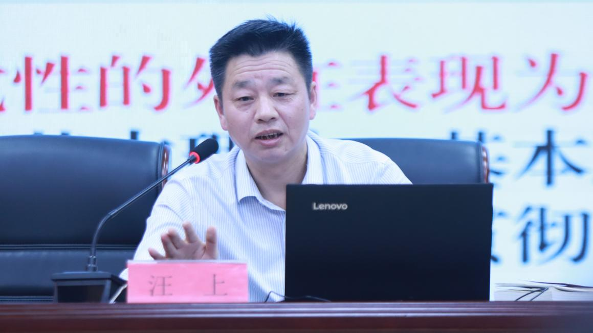 汪上强调,“强党性”是历次党内集中教育的重要内容,学习贯彻习近平新时代中国特色社会主义思想是党员增强党性修养的必修课,广大党员要正确把握党性的时代要求,做到对党忠诚、个人干净、敢于担当。