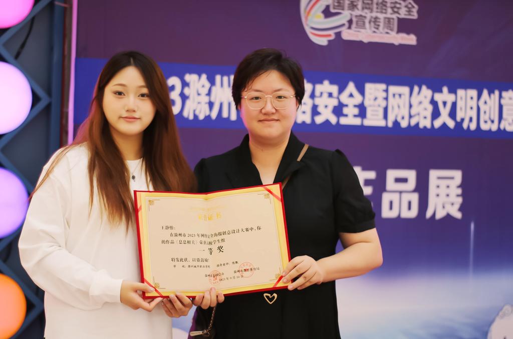 同时,王婧怡同学和陈默老师作为获奖代表,受邀参加由市委宣传部、市委网信办、市教体局等15个部门联合举办的2023年滁州市网络安全宣传周暨网络文明宣传月启动仪式。
