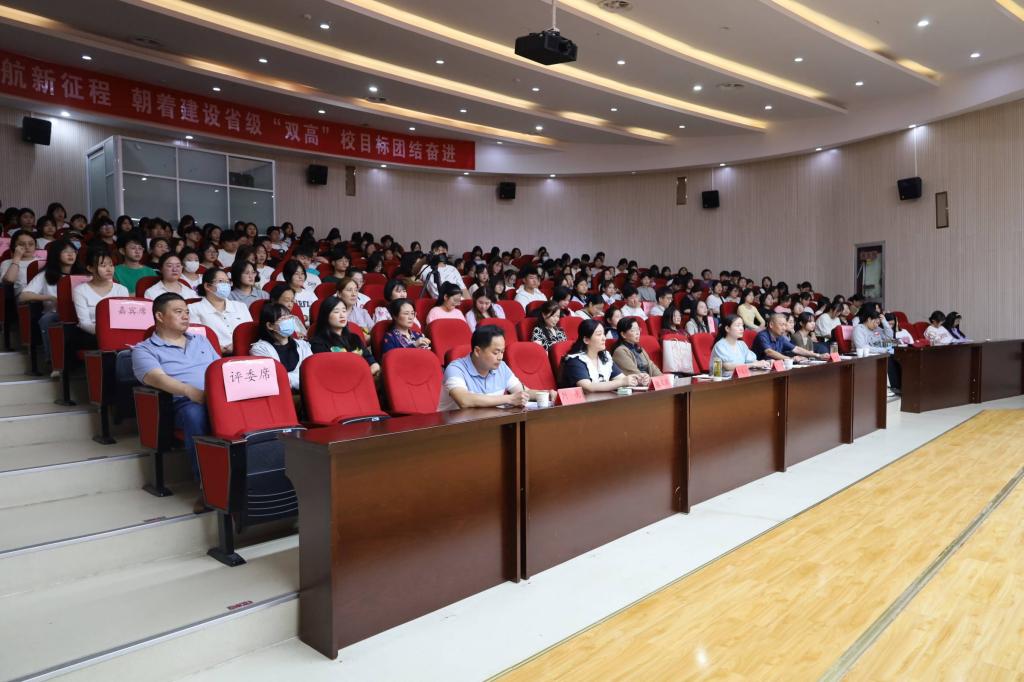 为了深入学习宣传贯彻党的二十大精神,进一步学深悟透习近平新时代中国特色社会主义思想,加强“大思政课”建设,切实发挥思政课立德树人关键课程作用,6月7日下午,学校首届“奋楫笃行二十大,建功逐梦新征程”大学生讲思政课比赛在图文中心四楼报告厅顺利举行。党委书记张志华、党委副书记牛春雨、党委委员、副校长吴惠珍、党委委员、办公室主任、宣传统战部部长陈通,各教学院(部)负责人、马克思主义学院全体思政课教师及200余名学生代表现场观看比赛。