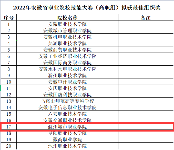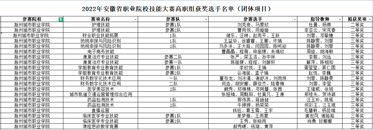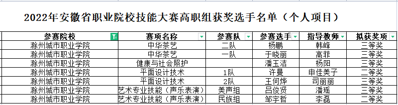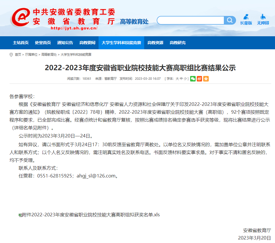 日前,安徽省教育厅发布《2022-2023年度安徽省职业院校技能大赛高职组比赛结果公示》,我校参赛团队和选手在本年度技能大赛中大放异彩,共计荣获团体项目奖项20项、个人项目7项,同时首次荣获大赛“最佳组织奖”!热烈祝贺!