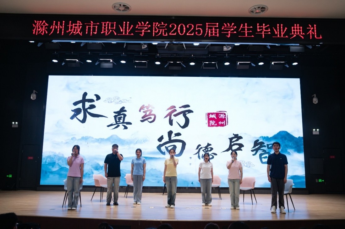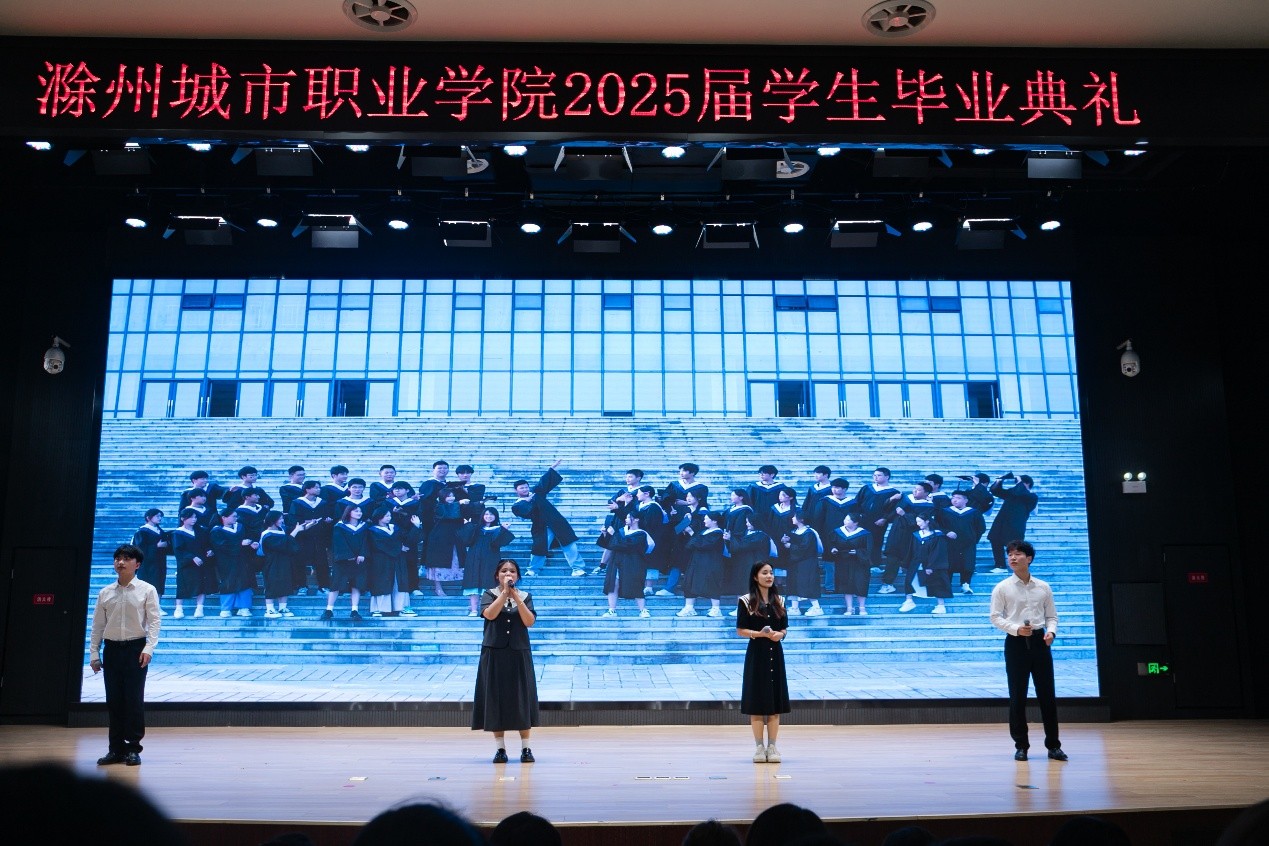 校党委副书记、校长汪上为毕业生代表颁发毕业证书,象征着他们学业征程的圆满收官,更预示着人生新篇章的到来。随后,学生代表深情朗诵,回顾了他们在滁城院的青春足迹,畅谈了对未来的憧憬与规划,并向母校献上最真挚的感恩与祝福。教师代表樊瑾发言,她以殷切的话语勉励毕业生秉持校训,脚踏实地,勇于担当,在广阔天地中书写无愧于时代的精彩人生。