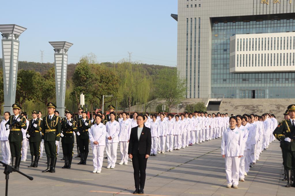 为深切缅怀革命先烈,弘扬爱国主义精神,追忆峥嵘岁月,汲取奋进力量,在清明节来临之际,3月31日清晨,学校在南广场举行“缅怀先烈精神 传承红色基因”主题升旗仪式,仪式由校团委主办,护理学院承办。护理学院党总支书记蔡季秋、学生党支部宣传委员申雅婷、辅导员代表、入党积极分子代表参加活动。升旗仪式由申雅婷主持。英姿飒爽的校国旗护卫队身着戎装,迈着整齐有力的步伐,护卫着鲜艳的五星红旗入场。伴着激昂雄壮的《义...