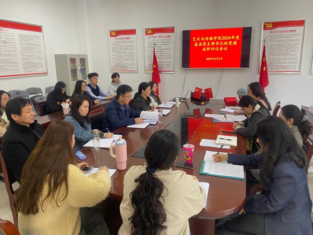 4月2日,艺术与传媒学院在党员活动室召开2024年度基层党支部书记抓党建述职评议会议。会议由学院党总支书记杨孝富主持,四个基层党支部书记、各支部支委、普通党员代表、教师代表、学生代表参加会议。杨孝富首先强调了此次述职评议会议的重要意义,指出这是对各党支部党建工作的一次全面总结与检验,也是进一步推动学院党建工作高质量发展的关键举措。随后,各党支部书记依次进行述职。三个教工党支部书记们围绕支部党员队伍建...