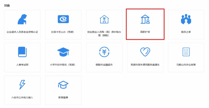 在页面最下端“其他”中找到“高职扩招”,点击即可进入高职扩招报名信息填写页面。