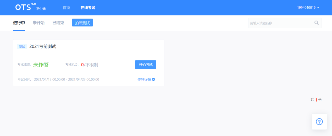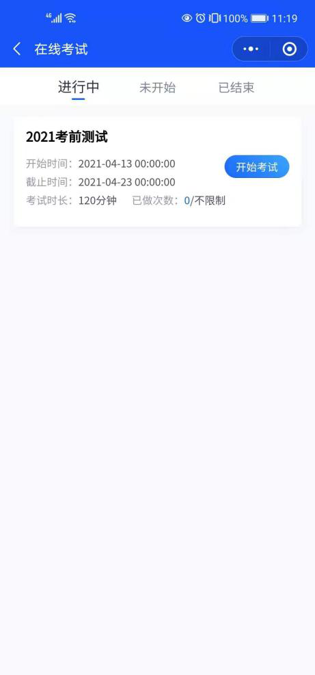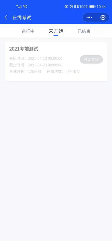 (2)点击在线考试,未开始,可以看到将要进行的考试