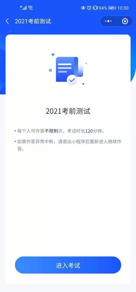 8. 考生模拟测试时间为2021年9月25日0:00-23:59,模拟测试成绩不计入最终成绩内。