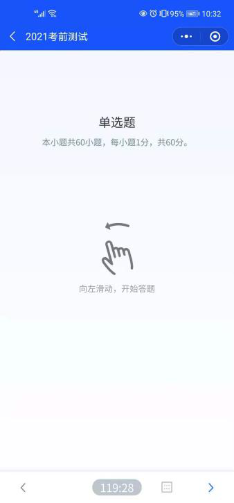 7. 考生在考试全程中不得查阅书籍或者网络资料的举动,违者系统直接取消考试成绩。