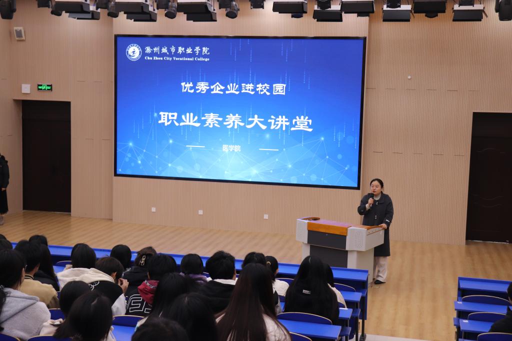 为提升学生职业素养,增进学生对企业的认知,帮助学生适应职场生活,11月16日下午,医学院邀请到通用生物(安徽)股份有限公司人力资源总监操乐微,在B4报告厅为2022级学生带来一场职业素养讲座。